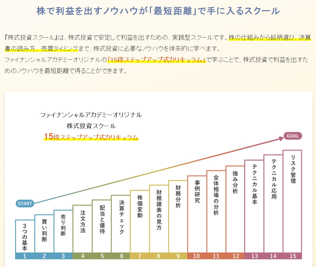 投資初心者から経験者まで幅広く支持されているのが、ファイナンシャルアカデミーの「外貨投資・FXスクール」です。