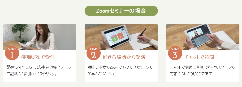 体験講座を通じて講義の雰囲気や内容を把握した上で、納得して本講座に進めるのも大きなメリットです。